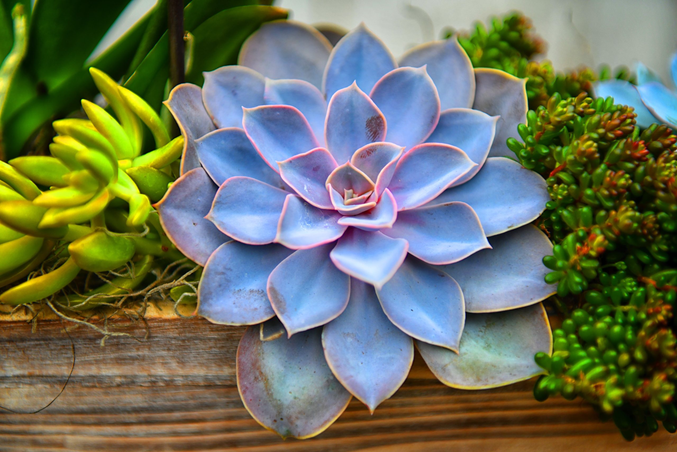 A variety of succulents are beautifully arranged and packaged for a long-lasting keepsake.
