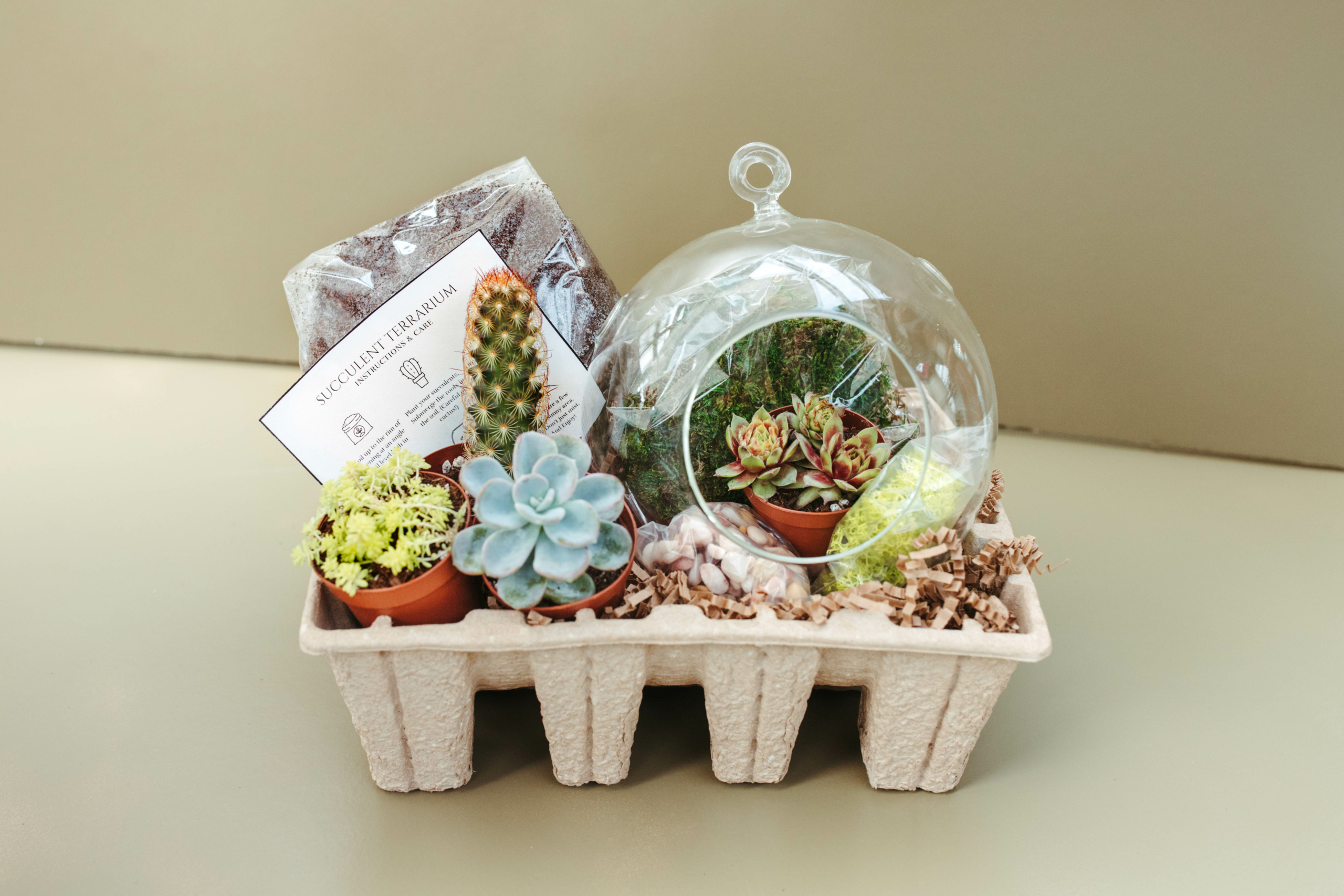This is a great, different alternative to sending floral or plant arrangements. Our Terrarium Kit has all the fixings to make your own succulent terrarium.